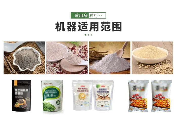 全自動旋轉式給袋包裝機適用于洗衣粉、調料粉、皂粉、淀粉、奶粉、食品添加劑、泡打粉、小蘇打粉、燒烤料、水產飼料、獸藥魚藥、足浴粉、面膜粉、浴鹽、葡萄糖粉、咖啡粉、糖粉、米粉、玉米粉、面包糠、鹵肉粉、增稠劑、香精香料、糖、甜味劑、木糖醇粉、抹茶粉、黑芝麻粉、胡椒粉、代餐粉等眾多粉末以及細微粉粒類物料均可包裝。