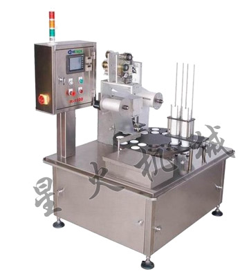 落杯→無杯檢出→充填→電眼校正封膜位置→印字→封口&杯蓋裁切→成品整列排出一貫作業。