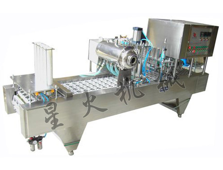 適用于各種酸奶、牛奶、豆奶、果汁飲料、調料、果醬等產品的生產,具有自動落杯、灌裝、消菌、光電跟蹤、封口(蓋)、自動對芯剪切、廢膜回收等功能。整機自動化程度高,封口強度好,結構合理,生產效率高,適用于各種進口、國產的鋁塑、PP、PE、CPP等復合卷筒包裝封口材料。