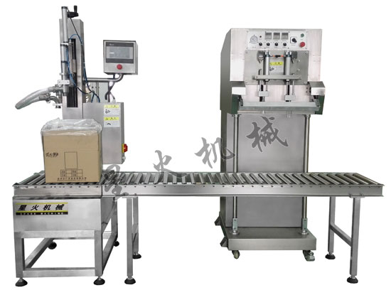主要針對重量5~50KG的醬料、芝麻醬、火鍋底料、豆瓣醬等高粘度產品的盒裝袋包裝形式的灌裝封口機,全不銹鋼材質,美觀大方,且能滿足具有腐蝕性的液體及衛生要求較高的食品類包裝。
