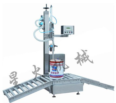 CJ-200B型半自動稱重式液體灌裝機(jī),原理是由稱重傳感平臺在微電腦程序控制下設(shè)定計量。灌裝時先去除皮重。物料在注入容器時先大量快速進(jìn)料后慢速小計量修正計量。操作者只需講容器防入平臺、口對下料嘴,此時程序啟動,下料嘴下降,打開灌裝閥進(jìn)料,當(dāng)達(dá)到設(shè)定量時自動停止補(bǔ)料,下料嘴上升,完成灌裝過程。
