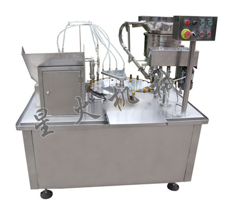 本機專業(yè)為10-20ML的口服液灌裝封口而設(shè)計,是口服液灌裝生產(chǎn)線中的灌裝主機,主要用于易拉直管瓶的灌裝、上蓋、封口。采用四頭跟蹤式注射泵灌裝,電磁振動自動送蓋,三刀離心式軋蓋(或旋蓋),具有無瓶不灌裝的功能。該機灌裝和封口合二為一,設(shè)計先進,結(jié)構(gòu)緊湊,易于操作與維護,完全符合GMP標準。