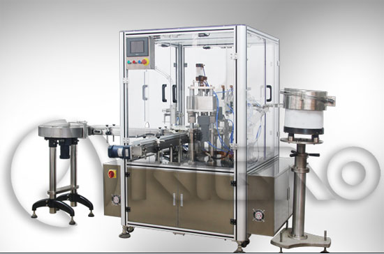 指甲油灌裝壓塞旋蓋聯動機視頻展示: