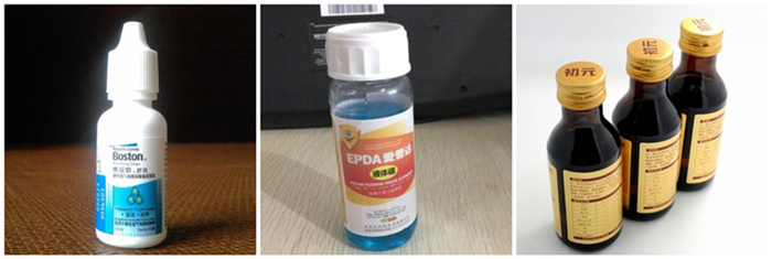 小瓶液體自動灌裝旋蓋貼標(biāo)一體機(jī)灌裝樣品: