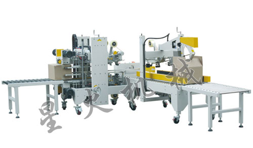 ④適用多種紙箱自動折蓋工字型封箱,紙箱上下四個角邊同時自動封口、撫平,快速、平穩,也可與自動化包裝流水線配套使用。