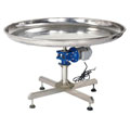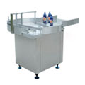 大量無序的瓶子由上瓶機(jī)被投入到理瓶轉(zhuǎn)盤中...