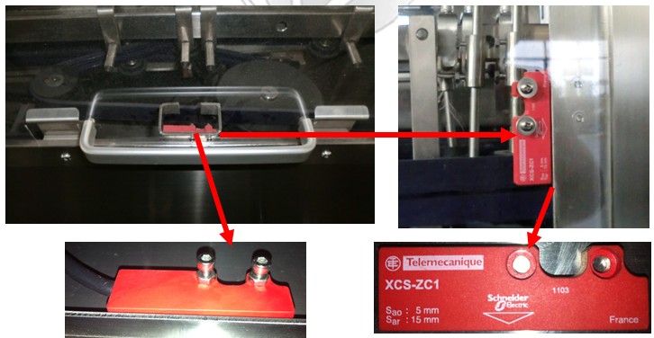 2.6、所有有機玻璃罩都裝有感應開關,有機玻璃罩需完全關閉機器才能啟動,機器運行時有任何有機玻璃門打開,機器運行停止,安全可靠。
