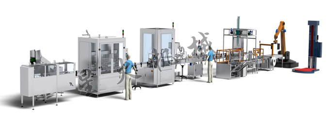 該生產(chǎn)線適用于農(nóng)藥水劑、乳劑、懸浮劑及高粘度物料的灌裝生產(chǎn),只需1名操作工,2名輔助工就能完成理瓶、灌裝、旋蓋、貼標(biāo)、鋁膜封口、噴碼、裝箱封箱及打包。該線具有自動(dòng)化程度高、劑量精卻、包裝效果好等特點(diǎn)。