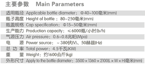適用于不同規(guī)格玻璃瓶及塑料瓶的外蓋(含螺紋蓋)自動(dòng)旋合,該機(jī)技術(shù)先進(jìn)、性能可靠、產(chǎn)能高。