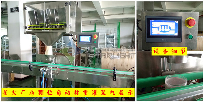 適用于雜糧、堅(jiān)果、調(diào)料等顆粒物料的罐裝自動(dòng)包裝生產(chǎn)。