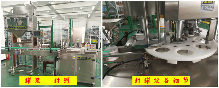 全自動(dòng)理瓶機(jī)—→顆粒自動(dòng)稱重灌裝機(jī)—→自動(dòng)封罐機(jī)—→直線式旋蓋機(jī)—→不干膠貼標(biāo)機(jī)—→收瓶機(jī)