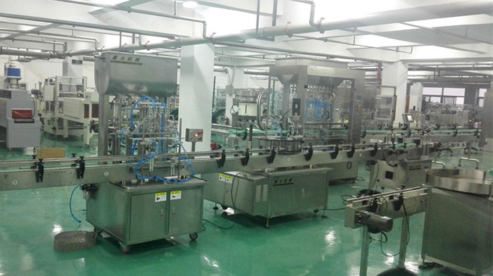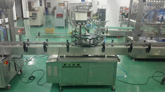 由四頭灌裝機的料桶倒入橄欖油,該機完成四頭同時瓶的灌裝,完成后的瓶子進入下一工序,由自動旋蓋機對瓶子進行上蓋、鎖蓋工作,完成后流入下一工序,由自動圓瓶貼標機對瓶子進行貼標,到此整個生產工序完成。橄欖油自動灌裝鎖蓋貼標生產線星火廠區實地展示: