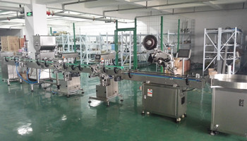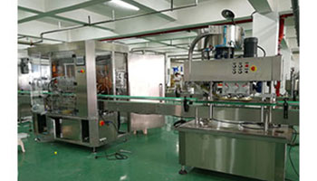 4頭灌裝旋蓋人工套膜收縮貼標生產線